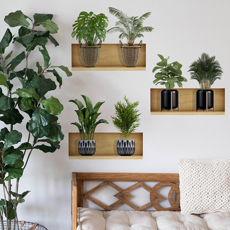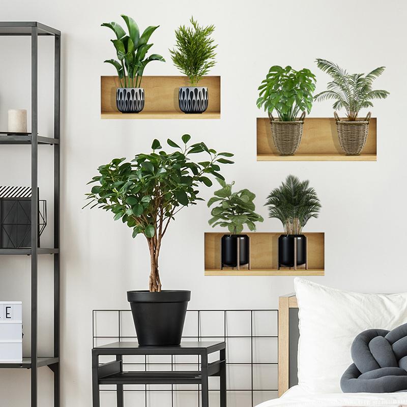 3 шт. Наклейка на стену с растительным дизайном, настенная наклейка с рисунком в горшке, фоновое украшение для стен и благоустройство