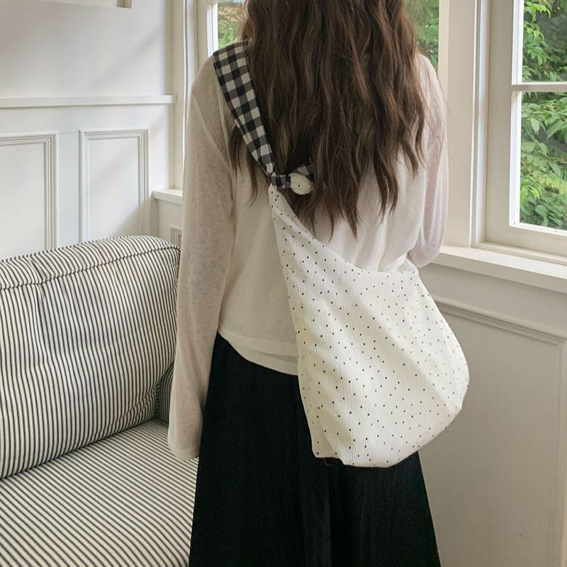 Корейская литературная холщовая сумка женская летняя большая сумка через плечо в горошек сумка через плечо с текстурой Niche