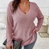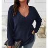 Женская одежда больших размеров с длинным рукавом, повседневная мода, V-образный вырез, полосатые трикотажные топы, весенние женские однотонные свободные футболки 5XL