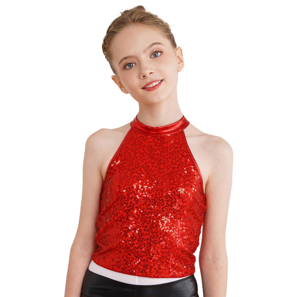 Детский джазовый танцевальный топ без рукавов с блестками для выступлений