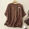 Летняя женская хлопковая льняная вышитая футболка с короткими рукавами, художественный однотонный пуловер, маленькая рубашка, прикрывающая живот, облегающий свободный топ — купить товар онлайн с бесплатной доставкой по всему миру!