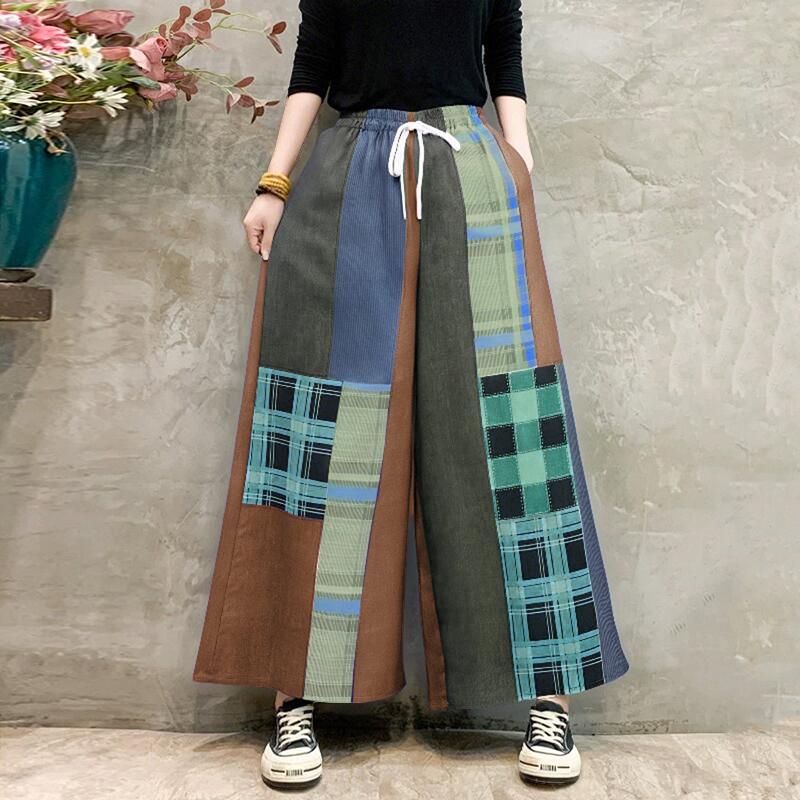 ZANZEA Женские повседневные свободные брюки в стиле пэчворк с эластичной резинкой на талии