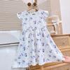 Летние платья с короткими рукавами и цветочным принтом для девочек среднего и маленького возраста, свежая милая тонкая юбка