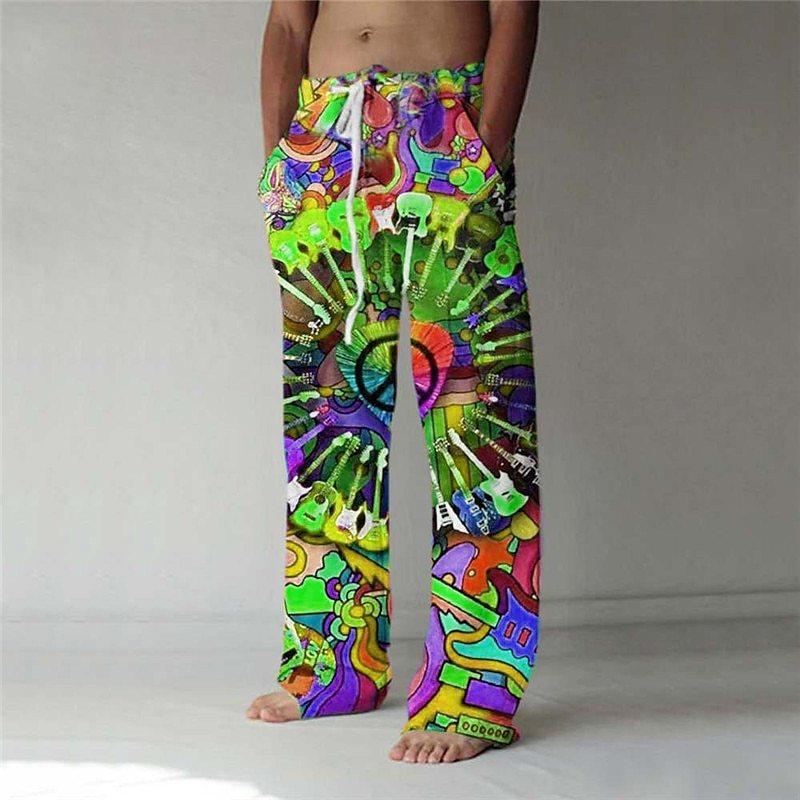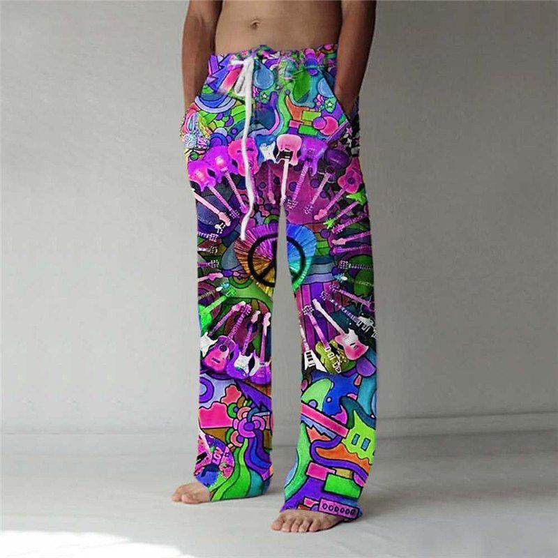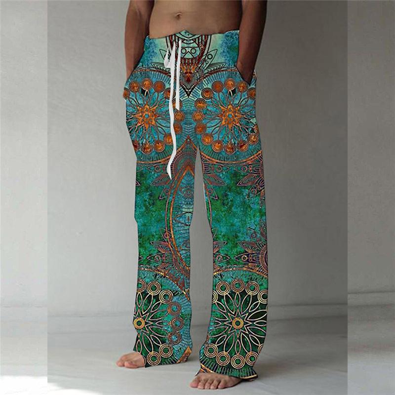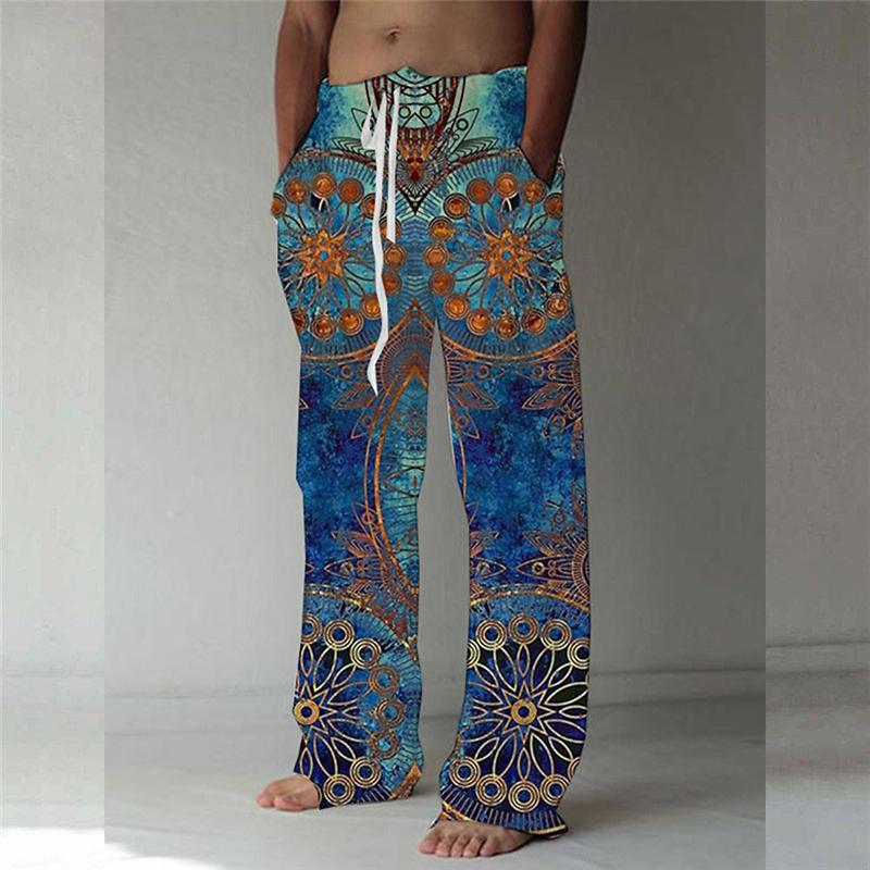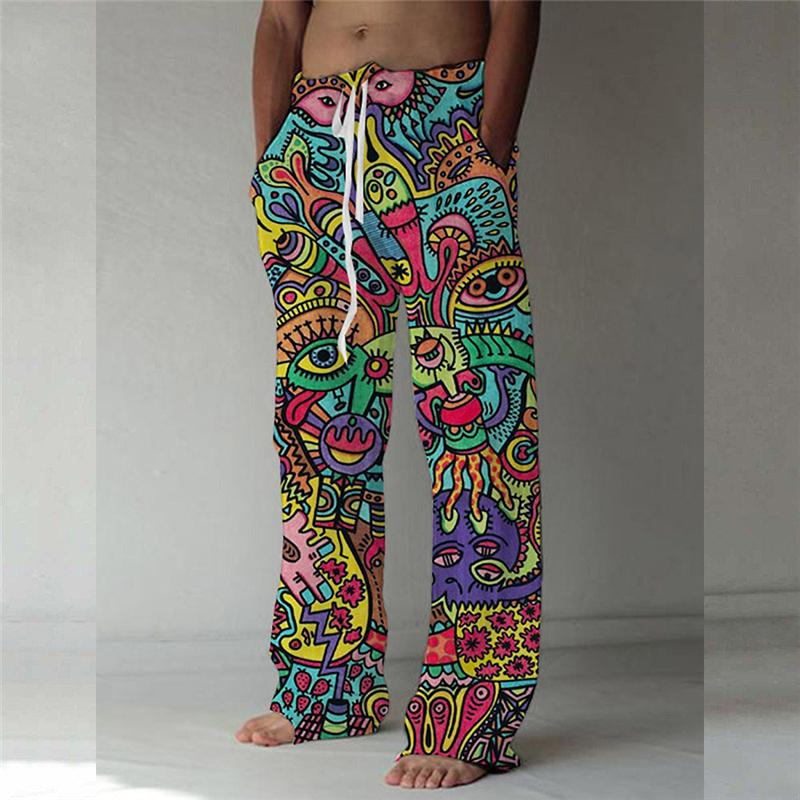 Винтажные свободные брюки с цифровой печатью 3D, мужские повседневные льняные брюки с завязками на талии, модные уличные длинные брюки для мужчин