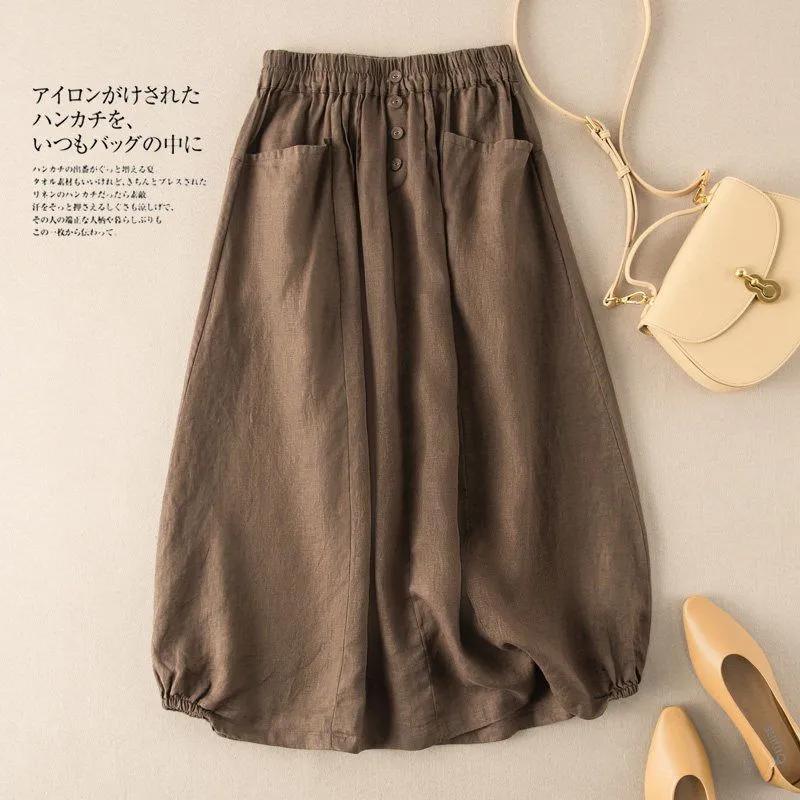 Плюс Размер Женская Летняя Ретро Юбка Женская Летняя Средняя Длина Высокая Талия А-силуэта Была Тонкой и Литературным Темпераментом