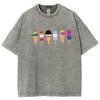 Свободная футболка с круглым вырезом, выстиранный деним, симпатичный принт, тренд, удобная повседневная одежда в стиле ретро для улицы, топы