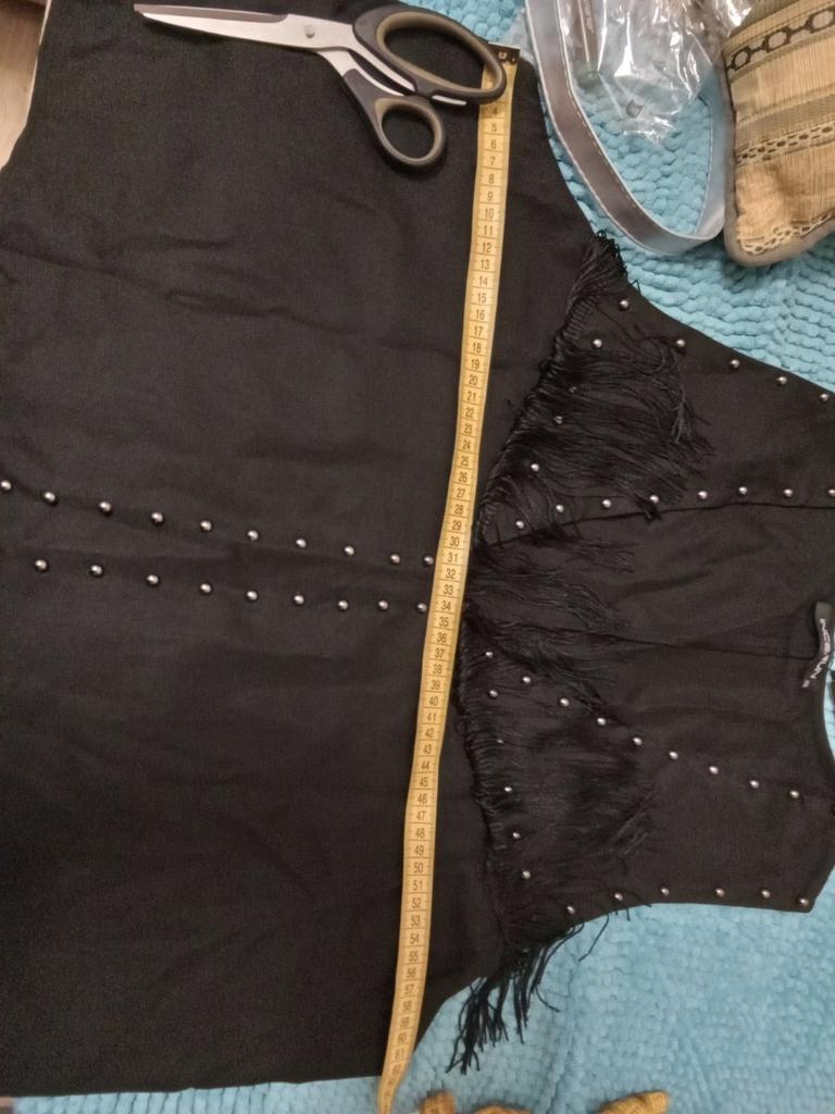 Жилет пошит очень качественно,но совсем не соблюдены размеры,которые заявляет продавец своему изделию- ОГ 136,а фактически 124 см! Ткань тонкий полиэстер,а не замша, как пишет продавец , размер на жилете указан, этикетки и бирки целы ,заклепки и бахрома придают жилету нарядность,если входите в размеры,озвученные мною,то к покупке рекомендую.При стирке на руках отвалилась одна заклепка- разломилась пополам и выпала из жилета!
