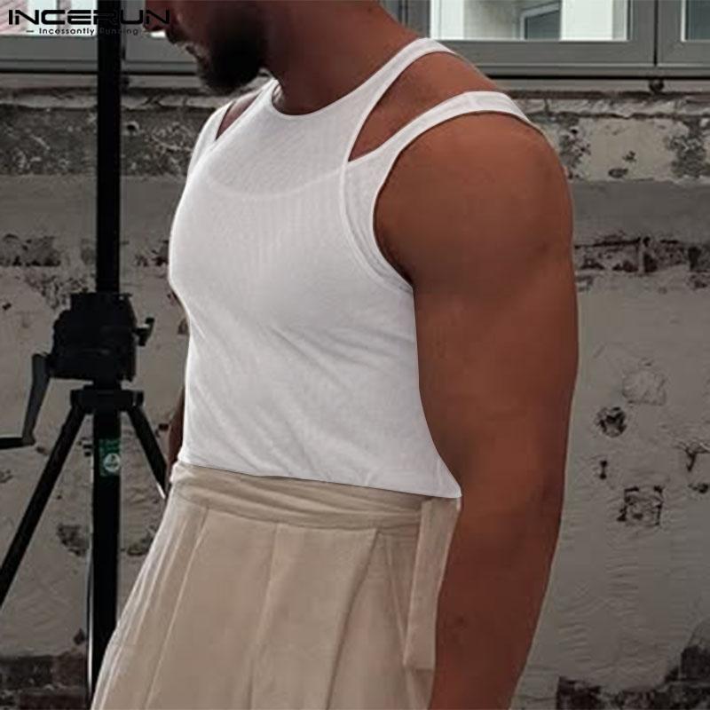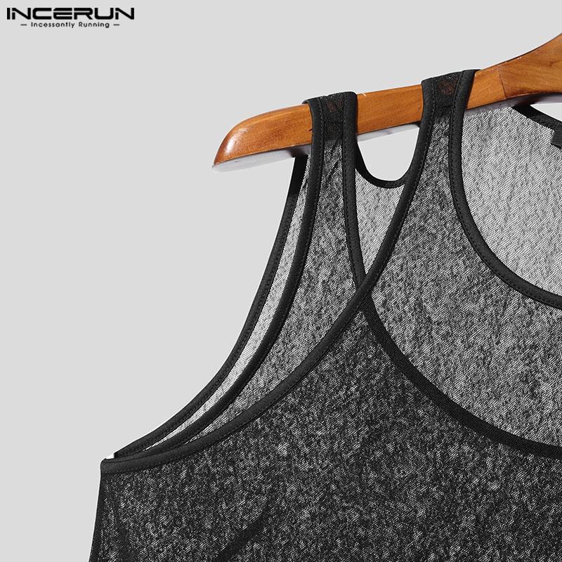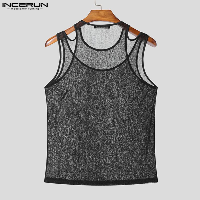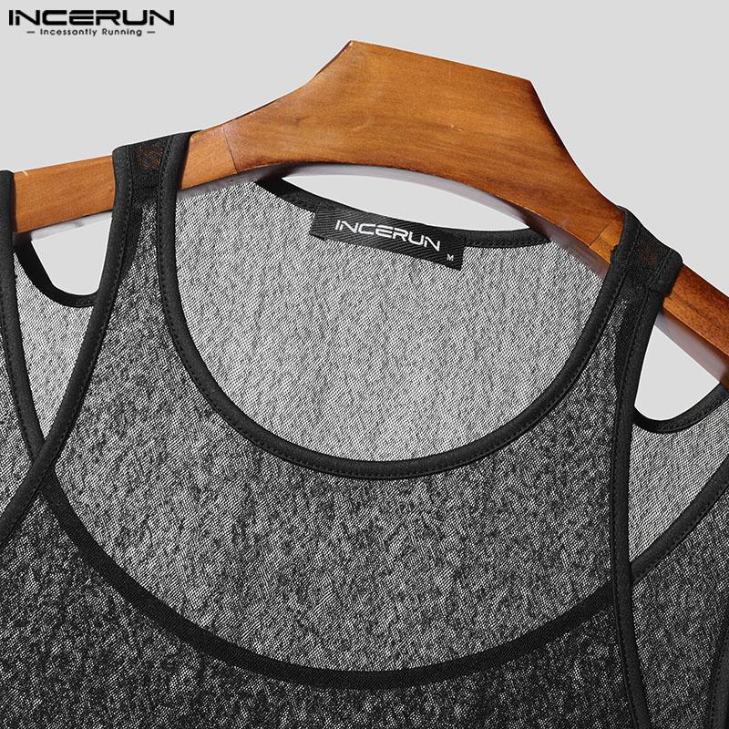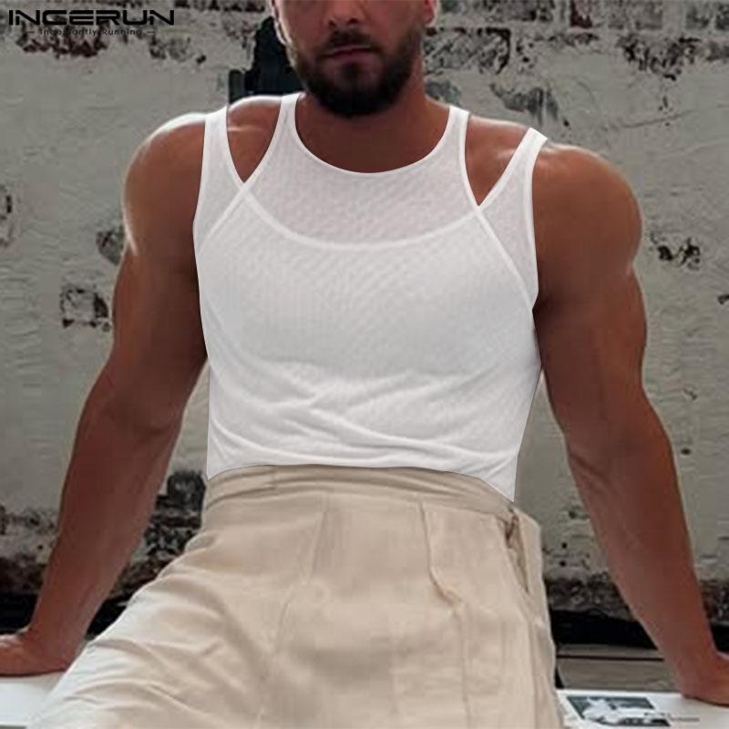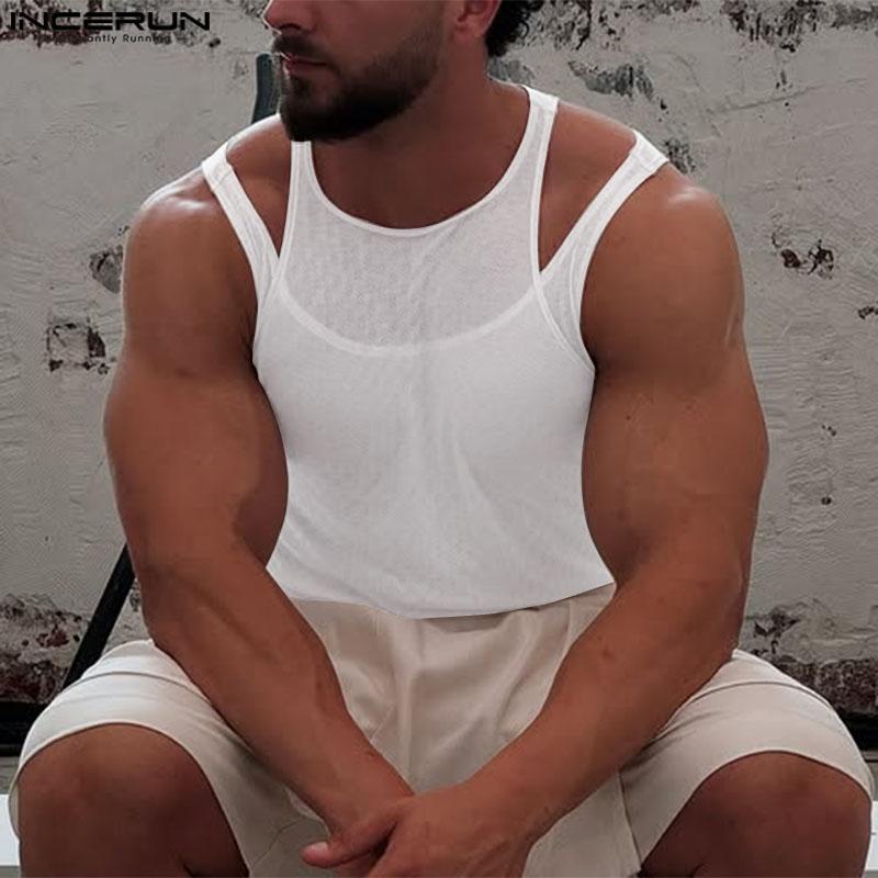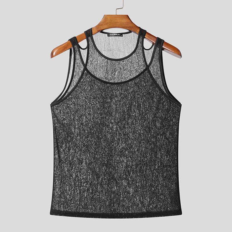 INCERUN Мужские летние прозрачные майки-топы без рукавов из двух частей с сетчатой подделкой