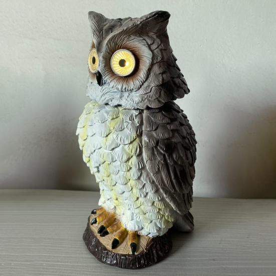 Функция автоматического включения/выключения: Благодаря встроенному датчику освещенности светящиеся глаза совы автоматически включаются в сумерках и выключаются на рассвете, обеспечивая простоту эксплуатации и экономию энергии, что исключает необходимость в техническом обслуживании.
