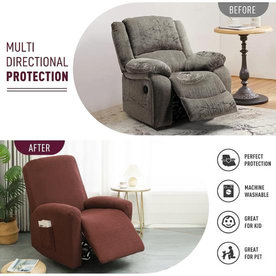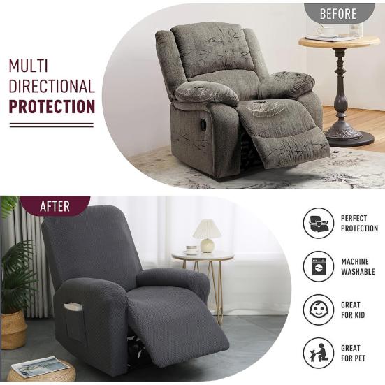 Оживите свое кресло-реклайнер: Скройте имеющиеся пятна и носите его без усилий с этим восстанавливающим чехлом, придав вашему креслу новый вид.. Защищает от ежедневного износа, продлевая срок службы вашей мебели и предлагая экономически эффективное решение для ее обновления.