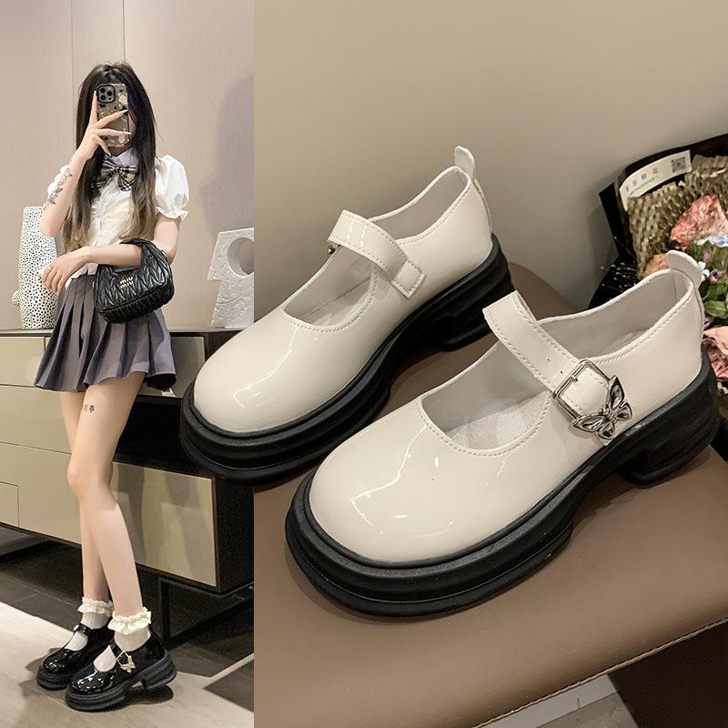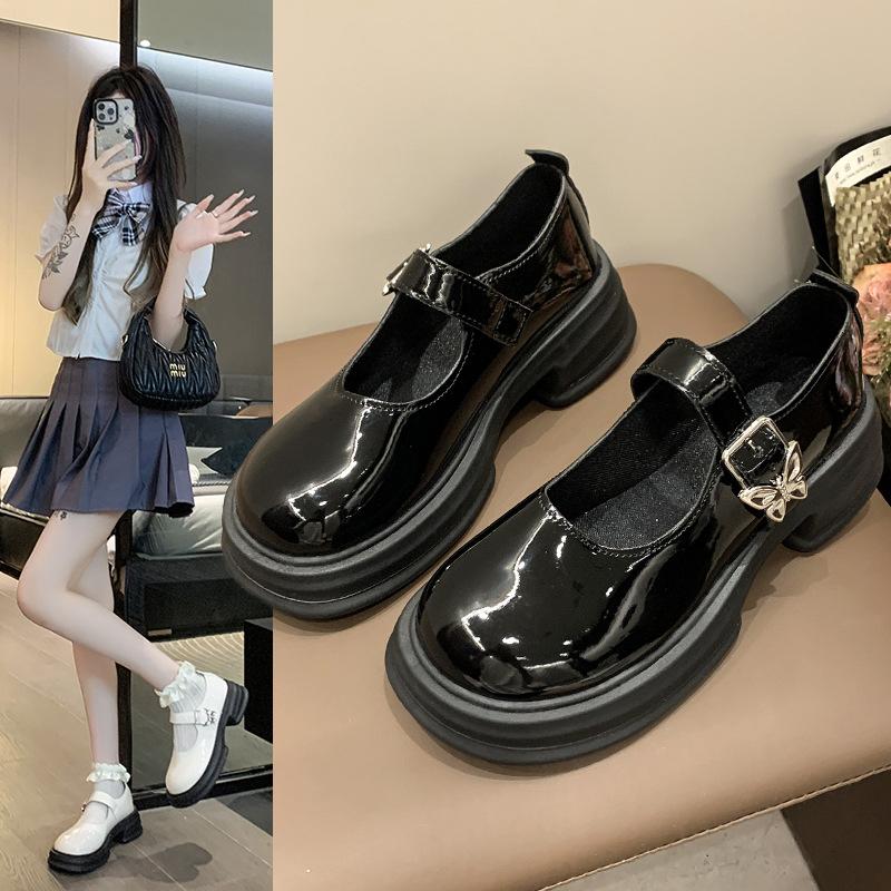 Туфли Мэри Джейн женские осень-зима 2025 года, новые ретро туфли с круглой головкой и пряжкой из одного слова, универсальные маленькие кожаные туфли на толстой подошве и толстом каблуке, одинарные