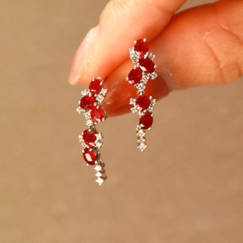 Длинные серьги-гвоздики Inspired Multiples с рубиновыми кисточками для женщин в этническом стиле. Легкие роскошные помолвочные украшения.