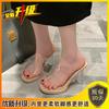 Босоножки на высоком каблуке женские 2025 новая летняя верхняя одежда изысканные и высококачественные однотонные толстые каблуки прозрачные кристаллы классные тапочки