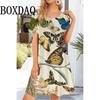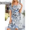 2025 Модное платье с принтом в виде бабочки, круглым вырезом и короткими рукавами, 3D-принт