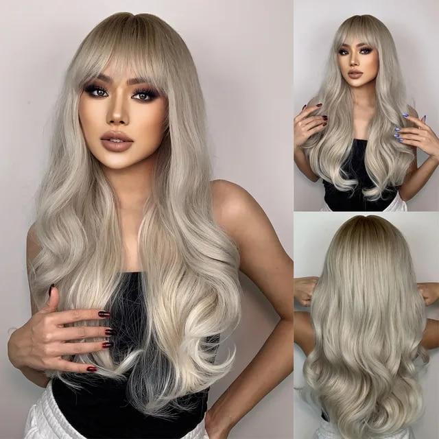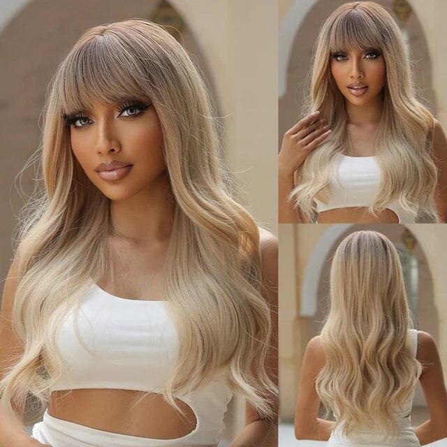 Длинный волнистый синтетический парик винно-красного цвета, натуральный высокотемпературный парик с челкой, красочные волосы для косплея на вечеринке для чернокожих женщин