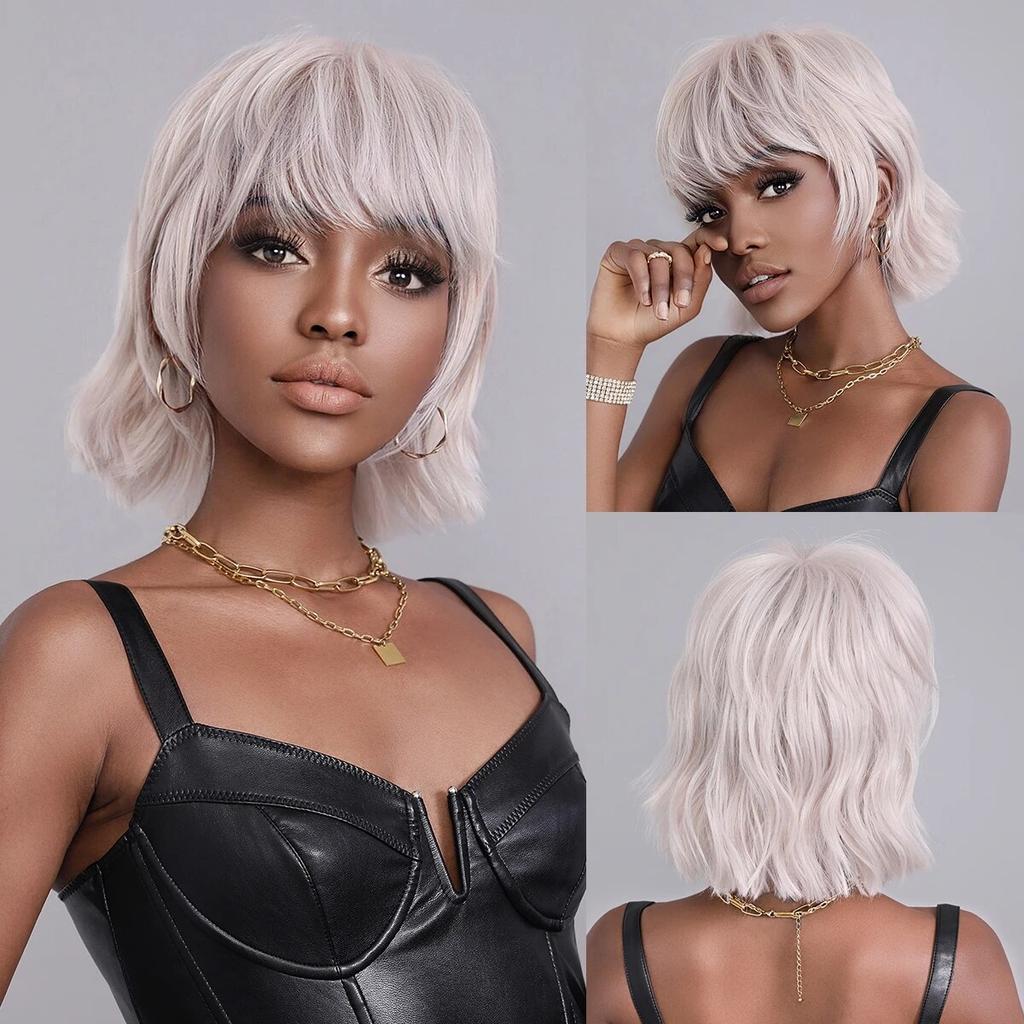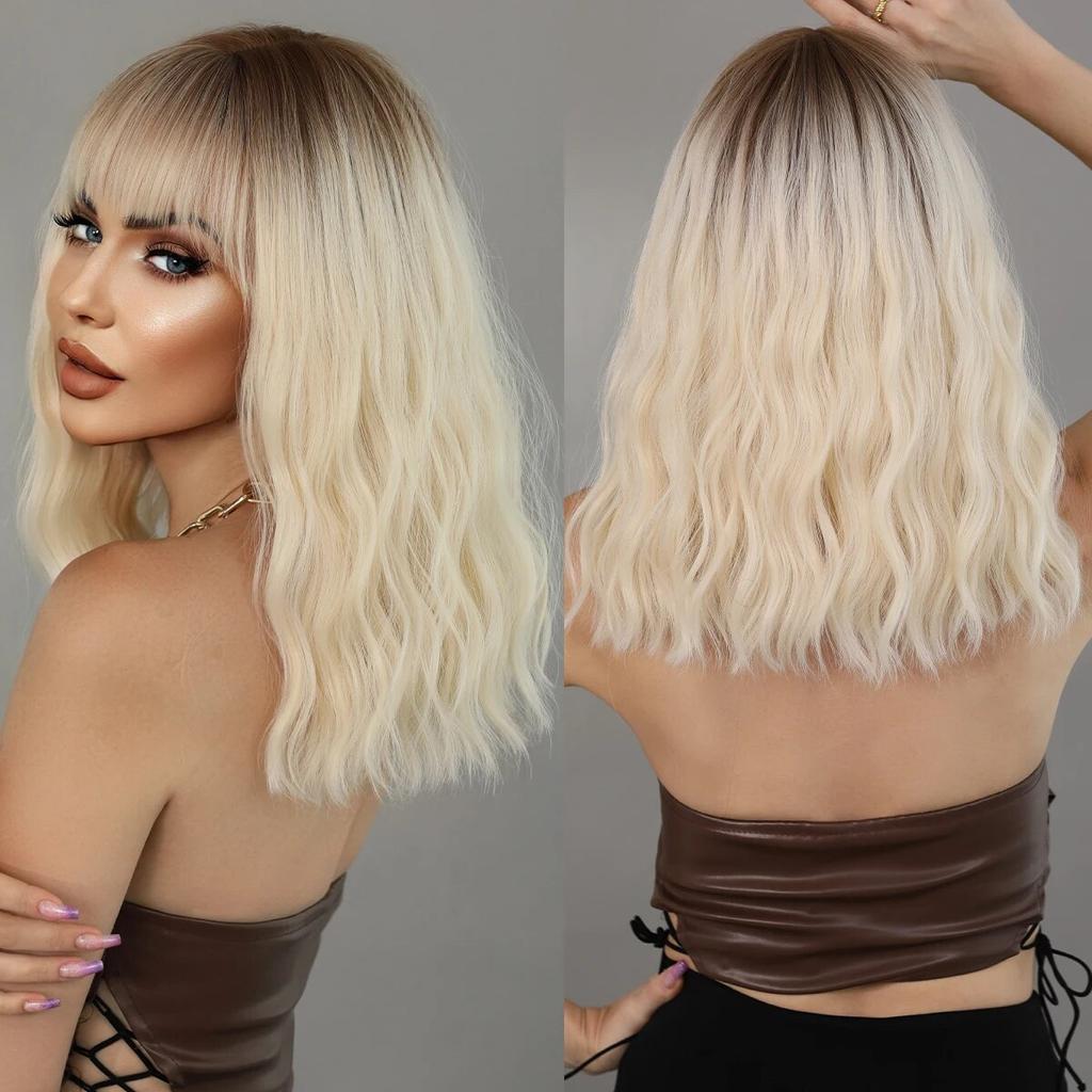 Парик для женщин, Повседневный парик, пушистый боб, парик из натуральных синтетических волос, модный парик с челкой, термостойкое волокно