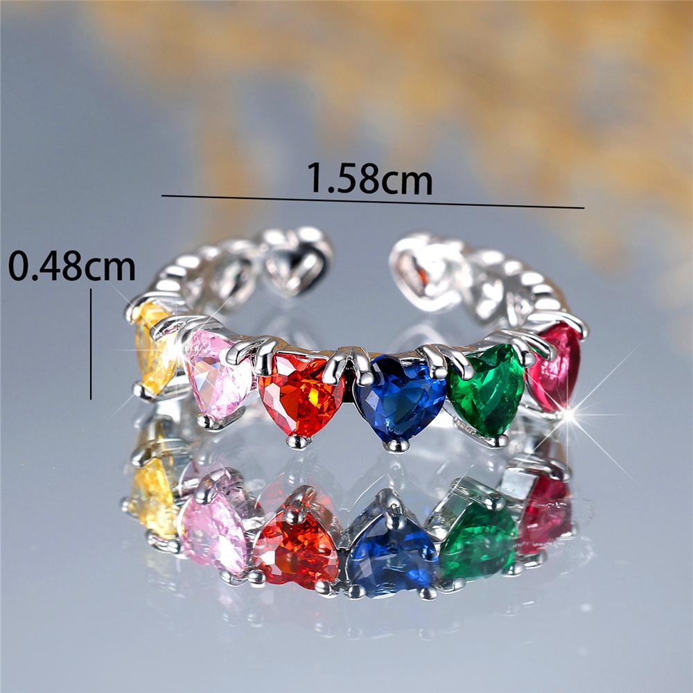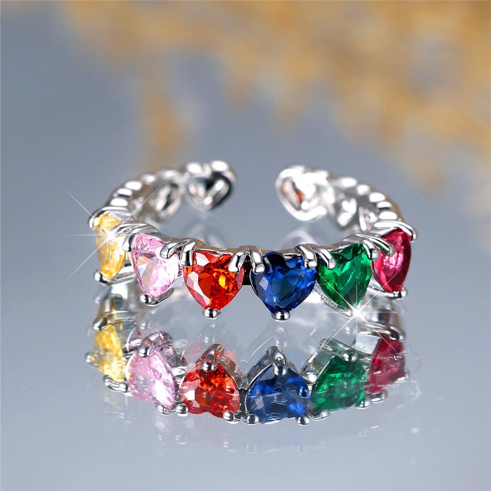 Милое женское кольцо с радужным цирконием и регулируемым сердцем в винтажном цвете с открытыми свадебными украшениями для женщин