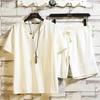 Мужской костюм из тонкого хлопкового льна с короткими рукавами, однотонный, модный, из льна, для отдыха, спорта, из двух частей, летний