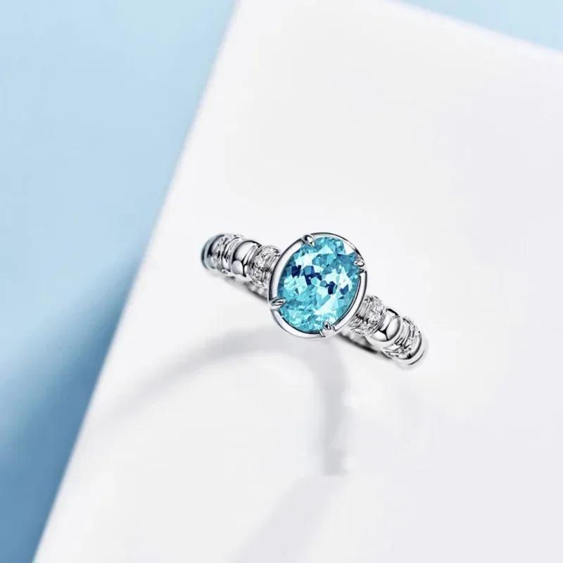 Блестящие инкрустированные синие драгоценные камни овальные кольца для женщин легкие роскошные Параиба Simplicity модное кольцо вечеринка изящные ювелирные изделия — купить товар онлайн с бесплатной доставкой по всему миру!