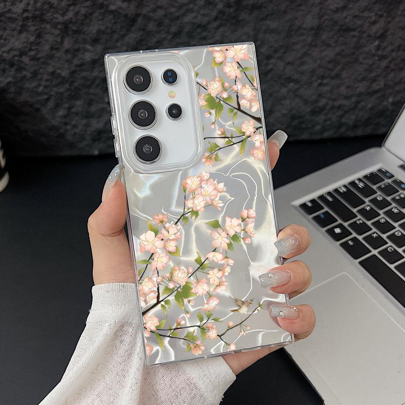 Цветочный узор блестящий тонкий жесткий чехол для задней панели из поликарбоната для Samsung S25 Ultra S24 FE S23 A36 A56 A16 A55 перо сверкающий ударопрочный чехол для телефона из ТПУ с мягким краем