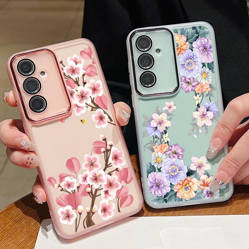 Мягкий силиконовый тонкий чехол с цветочным узором для Samsung S25 Ultra S24 FE S23 Plus A36 A56 A16 A55 A15, защитная пленка для объектива, противоударный прозрачный чехол для телефона