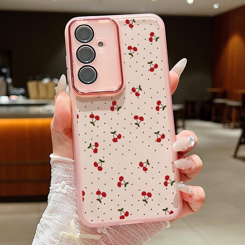 Мягкий силиконовый прозрачный чехол с принтом вишни для Samsung S25 Ultra S24 FE S23 Plus A36 A56 A16 A55 A15 A26, защитная пленка для объектива, противоударный тонкий чехол для телефона
