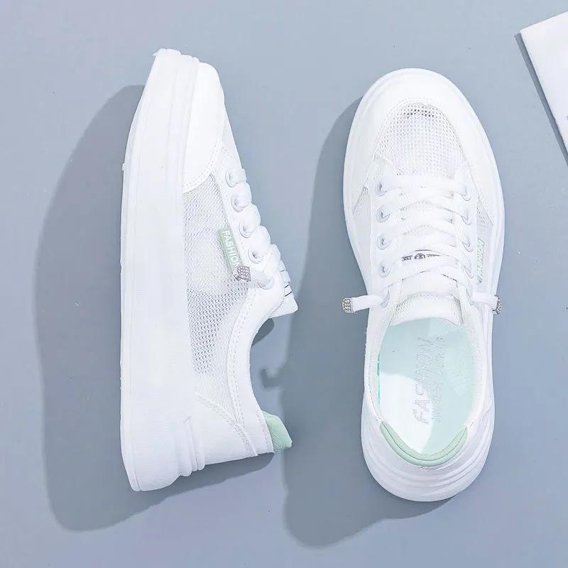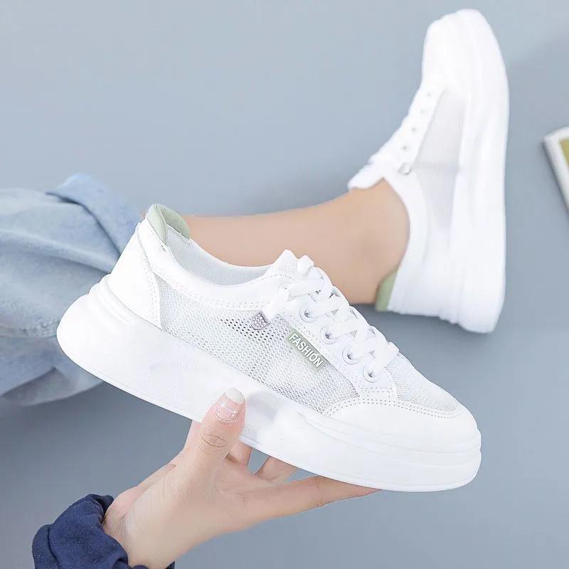 Весенние и летние женские белые туфли, универсальные туфли из тонкой сетки, повседневные туфли на плоской подошве с дышащей сеткой