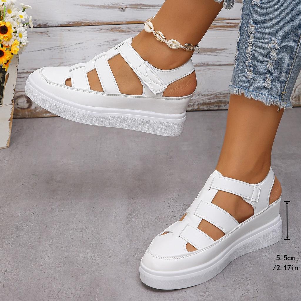 Полые повседневные туфли женские летние новые большие размеры толстая подошва внутри увеличение женские туфли