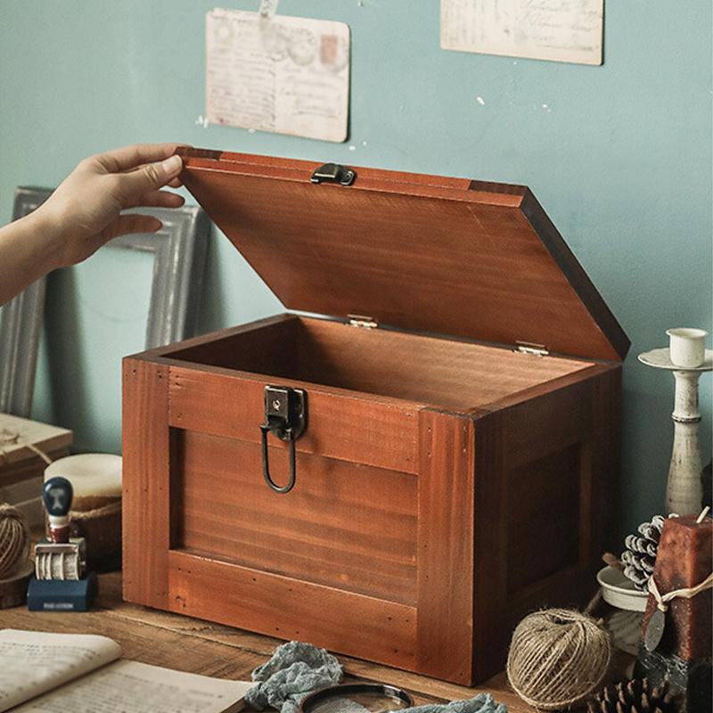 1 шт., вместительный винтажный деревянный ящик для хранения с замком и ключом, многоцелевой шкаф для хранения сувениров и сокровищ, предметов искусства, хобби, ремесел, аксессуаров.