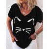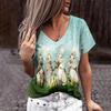 Design Sense Весна и лето Новая удобная свободная женская футболка с V-образным вырезом и короткими рукавами с 3D-принтом