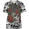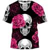 Футболка размера XXS-6XL Plus, мужская футболка с рисунком черепа и розы в стиле ретро, летняя мода, повседневные футболки с коротким рукавом, топы с 3D-принтом