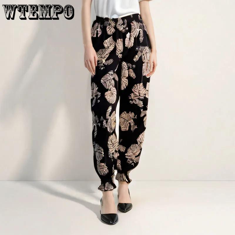 WTEMPO Эластичные тонкие брюки-джоггеры с высокой талией и принтом, женские весенне-летние брюки с широкими штанинами из ледяного шелка, свободные укороченные брюки для мамы