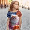 Летний топ с круглым вырезом и принтом в виде 3D животных, кошек и лисы, модные повседневные футболки с короткими рукавами для девочек