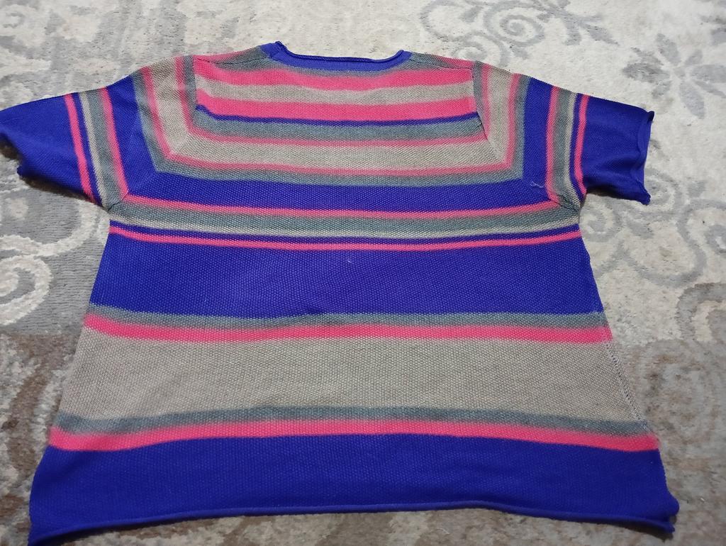 Не соответствует описанию совсем: 2 XL заявлено: длина 68 см, ОГ- 112, ОТ 116, ОБ 118. В реалии: длина 61, ОГ- 102, ОТ- 102, ОБ- 106. Не правда ли, разница весьма ощутима. На фото плотный джемпер с коротким рукавом, а на деле он тонкий, хлипкий какой-то, сетчатый. С изнаночной стороны много необрезанных ниток, швы плохо обработаны. И запросил продавец за это безобразие 980 руб. Сейчас цену снизили чуть не вдвое. Когда делала заказ, отзывов ещё не было. Повелась на картинку . Товар однозначно не рекомендую