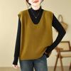 Жилет для женщин хлопковый топ без рукавов трикотажный свитер с V-образным вырезом жилет винтажный свободный повседневный жилет большого размера — купить товар онлайн с бесплатной доставкой до всему миру!
