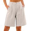 Шорты для женщин длиной до колена, нарядные, широкие, с высокой талией, женские льняные брюки, летние, повседневные — купить товар онлайн с бесплатной доставкой до всему миру!