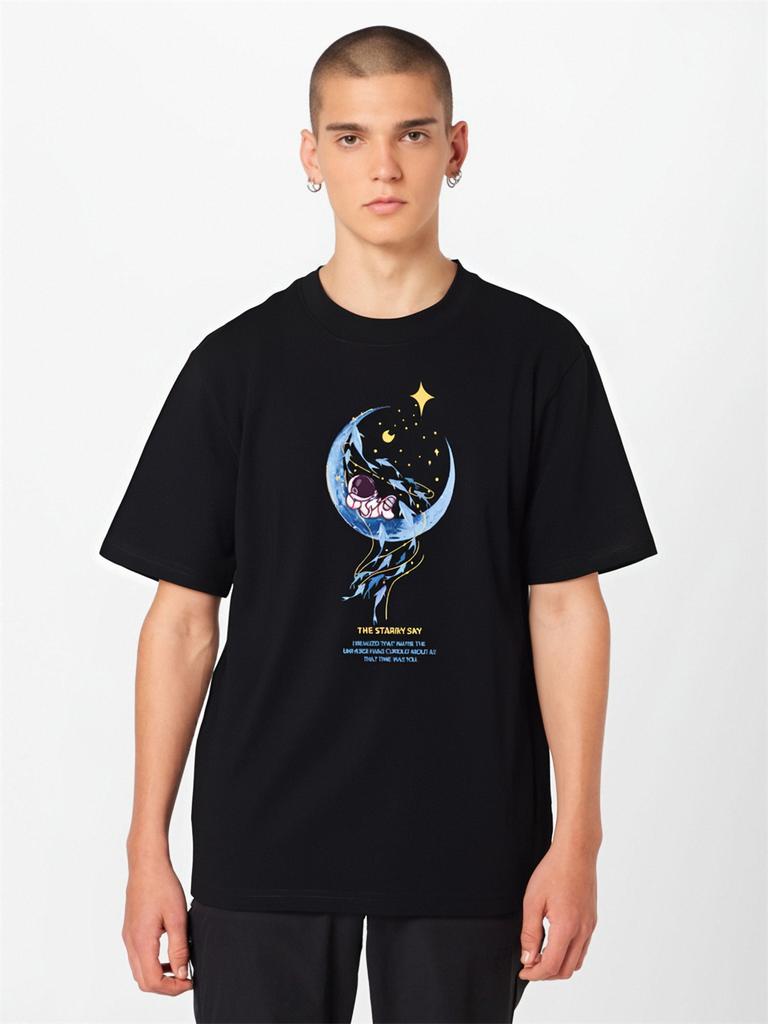 Мужская хлопковая футболка с короткими рукавами и рисунком астронавта на Луне, свободная футболка большого размера
