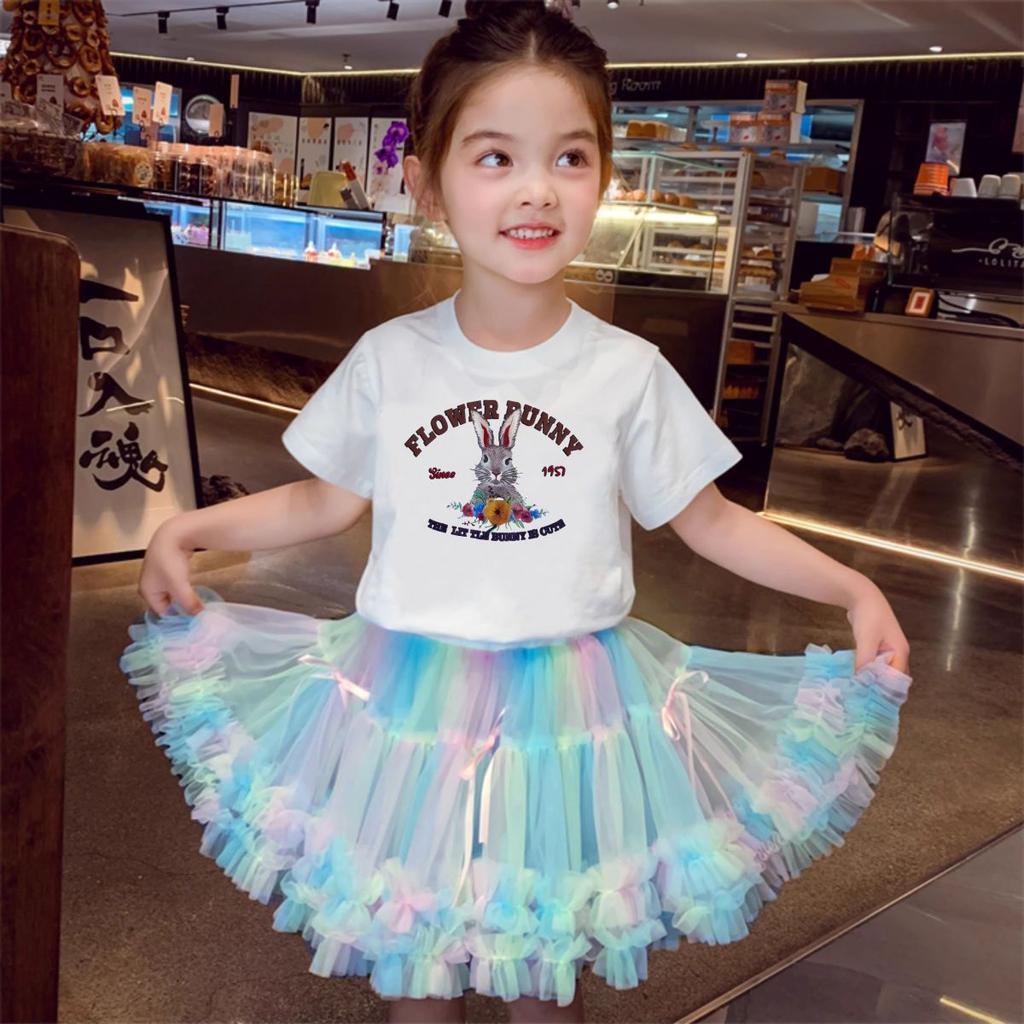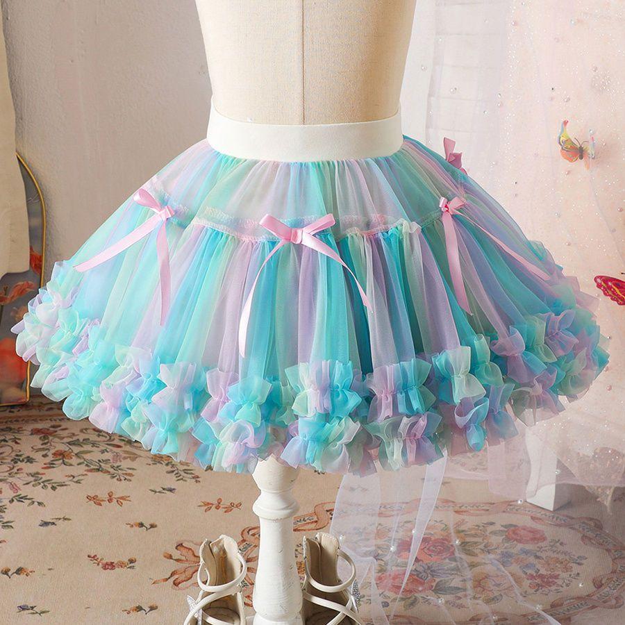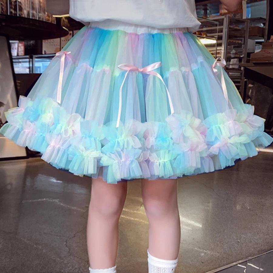 Юбка-пачка для девочек, весна/лето, сетчатая юбка для девочек, юбка принцессы, однотонная детская юбка средней длины