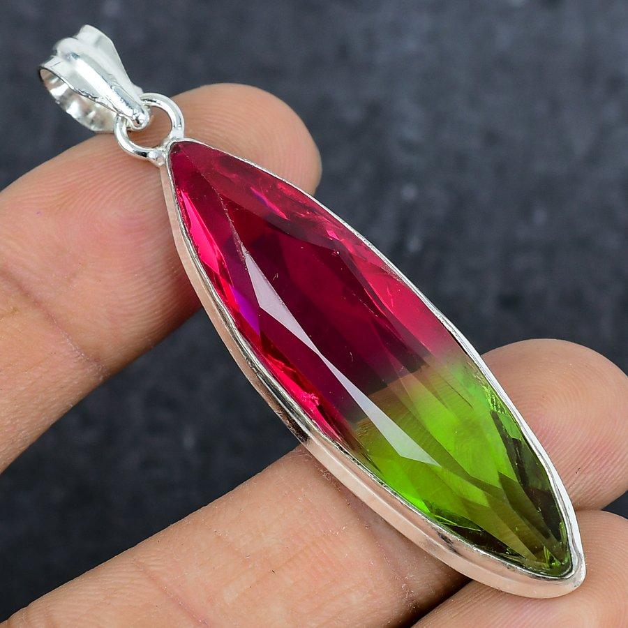 Bi-Color Tourmaline Gemstone 925 Sterling Silver Jewelry Pendant 2.64" z7Q56