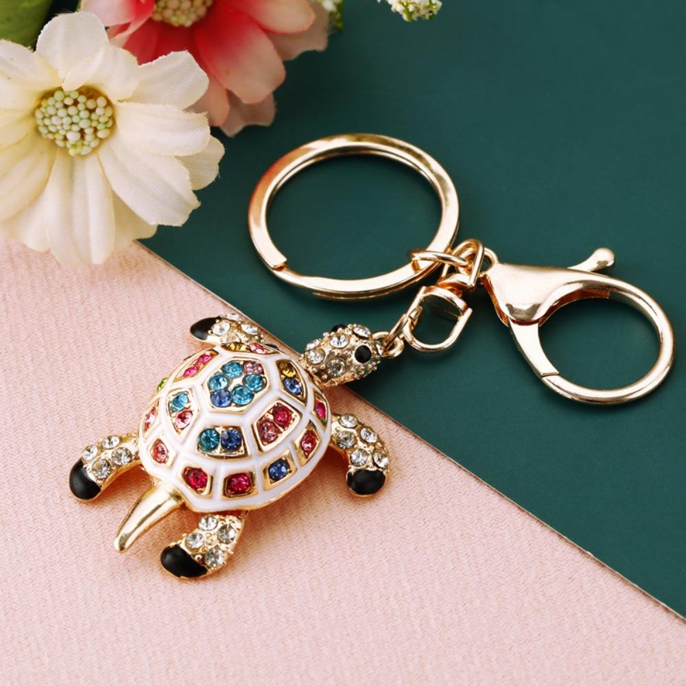 Красочный брелок для ключей в виде черепахи со стразами, подвесной кулон, модный держатель для ключей, подарок