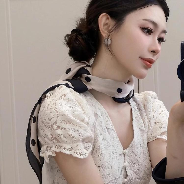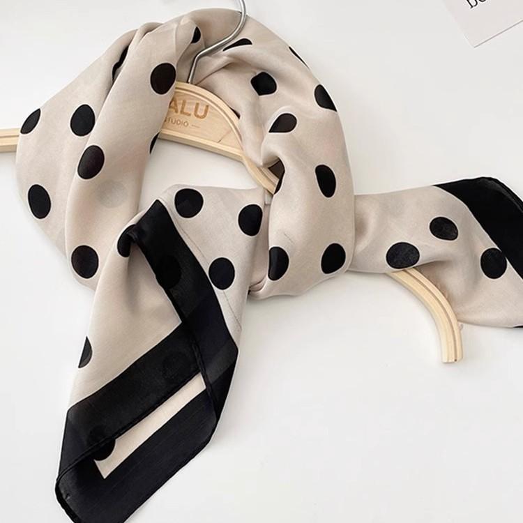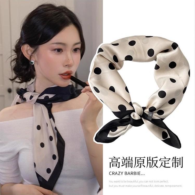 Черный шарф в горошек, роскошный высококачественный небольшой квадратный шарф для женщин, шейный платок, повязка на голову, весна-лето, новая универсальная модная подходящая рубашка