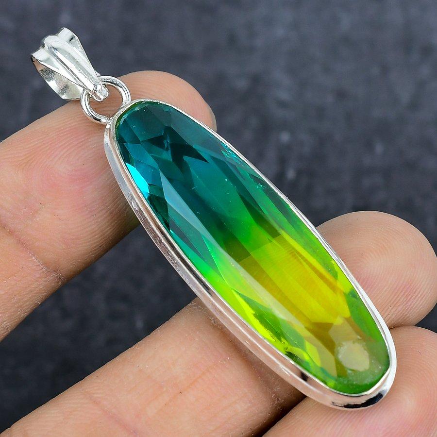 Bi-Color Tourmaline Gemstone 925 Sterling Silver Jewelry Pendant 2.44" D4j53