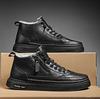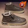Мужские кроссовки с высоким верхом, зимние бархатные утолщенные теплые хлопковые туфли, рабочие, спортивные, для отдыха, кожаная поверхность, средняя высота, водонепроницаемые кеды