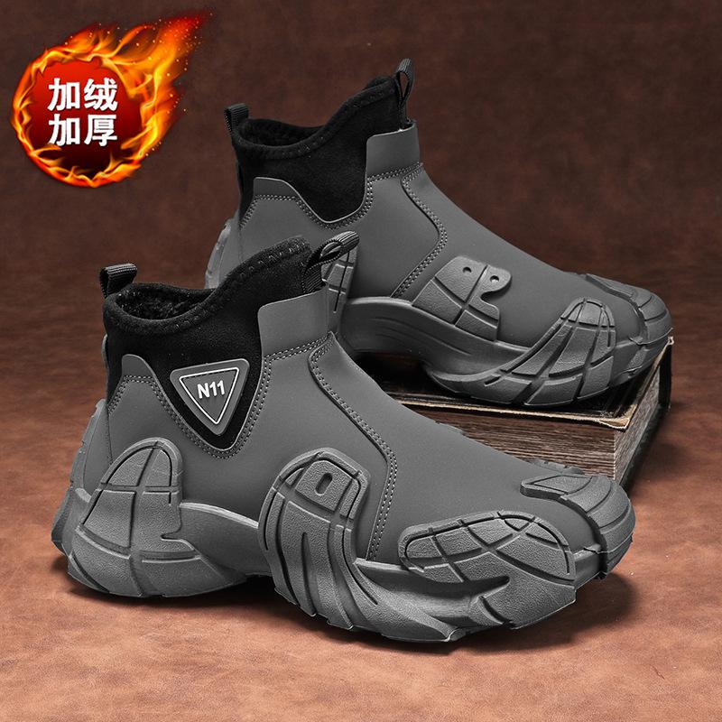 Мужская обувь 2024 года, новая осенняя обувь с высоким берцем, нескользящая, водонепроницаемая, для работы на стройплощадке, мужская спортивная обувь из хлопка Martin с бархатом