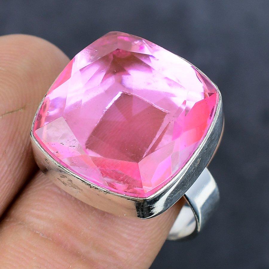 Розовый Кунцит Драгоценный камень Ручной работы Ювелирное изделие Кольцо из стерлингового серебра 925 пробы Размер 10 P2g63