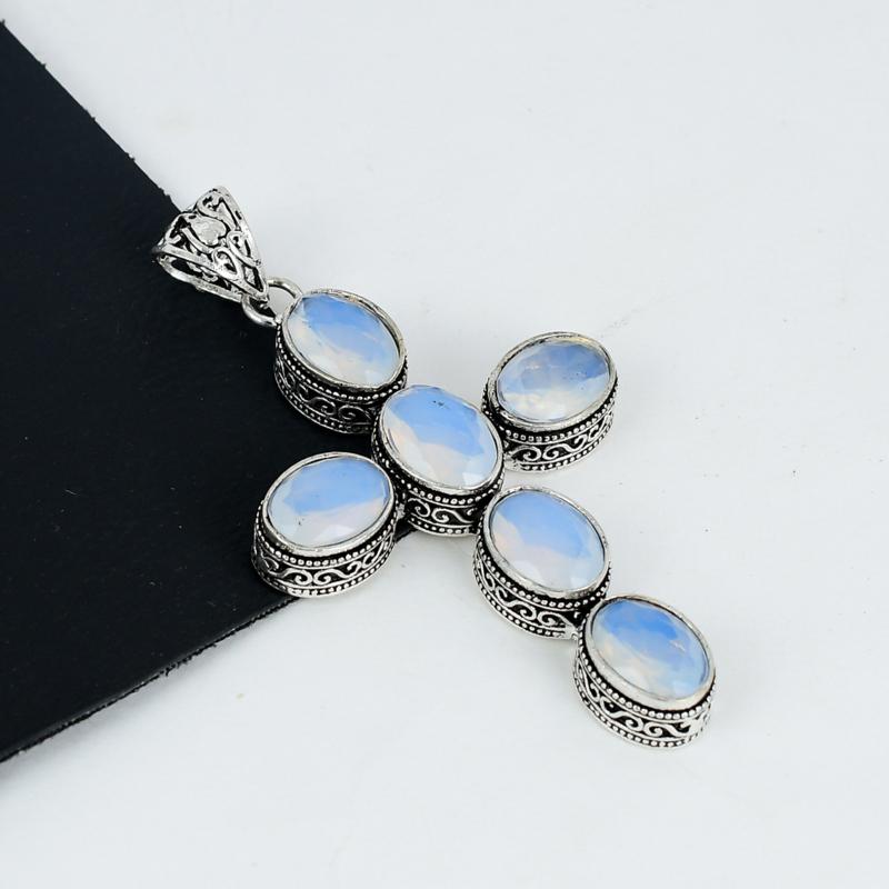 Кулон с молочным опалом из серебра 925 пробы - Ручная работа, Дизайн креста, Ювелирное украшение для повседневной носки, Уникальный кулон с молочным опалом, Свадебные подарки