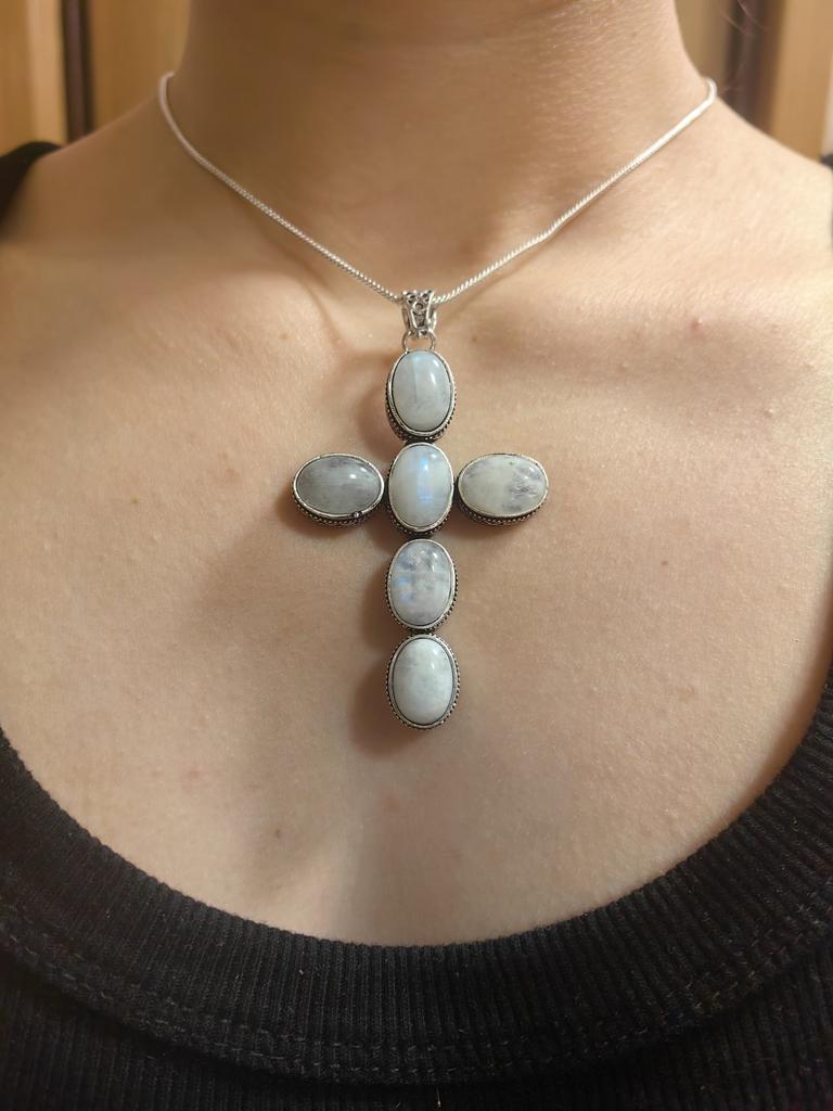 Подвеска из радужного лунного камня из серебра 925 пробы - Ручная работа, Дизайн креста, Украшение на каждый день, Уникальные подарки-подвески с радужным лунным камнем