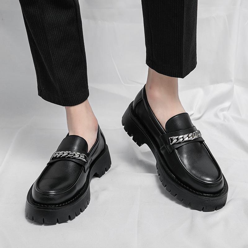 Туфли на платформе из британской кожи. Мужская обувь в стиле ленивых повседневных мокасин. Молодежные тенденции, усиливающие популярность панк-обувь для ночных клубов и свадеб.