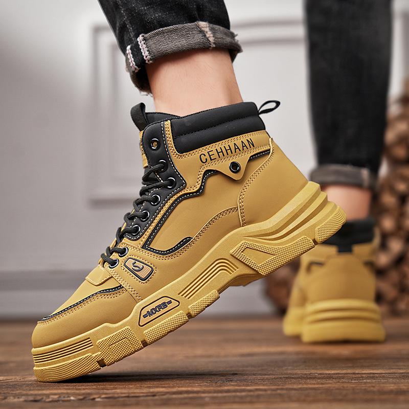 Ботинки мартинсы мужские 2024 новые осенние мужские в британском стиле высокие ретро мужские туфли рабочие страховочные ботинки цвета ревеня