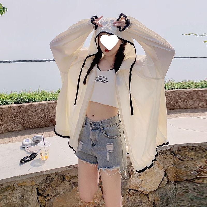 Большие размеры, модная одежда с капюшоном и солнцезащитным кремом, женская верхняя одежда, летняя тонкая куртка с длинными рукавами, корейская версия дышащей свободной куртки